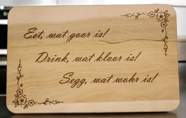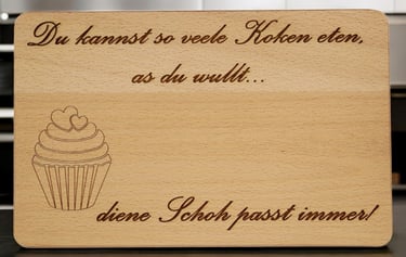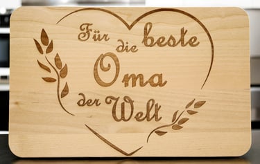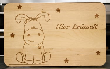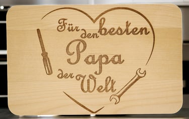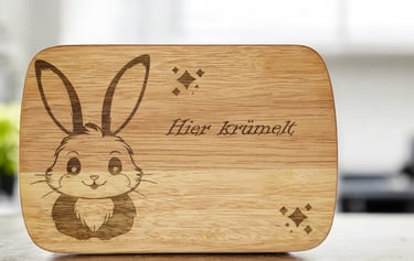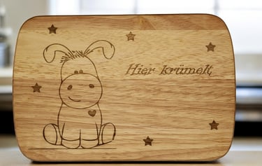 Unsere Frühstücksbretter erhalten Sie mit vielen verschiedenen Motiven - ganz allgemein oder sehr individuell mit eingraviertem Namen. Dazu haben Sie bei vielen Brettern die Wahl zwischen einen Bambus-, einem Birken-, einem Buchen- oder einem Gummibaumbrett. Hier ist wirklich für jeden, ob klein oder groß, etwas dabei!