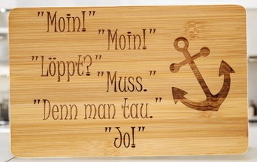 Preislich liegen die Bretter zwischen 11,00 Euro für Bambus und 15,00 € für Gummibaum. Bei einem individuellen Wunsch, bei dem wir das Motiv komplett neu bzw. anpassen müssen, kommt eine kleine Aufwandspauschale hinzu, die abhängig vom Motiv ist. Darüber sprechen wir im Vorwege selbstverständlich.